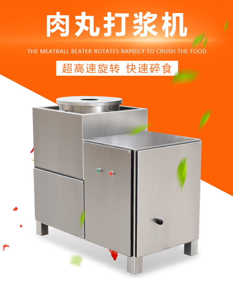 高速打漿機選用全不銹鋼制作,開機2-3分鐘即可完成打肉、配料,攪拌成漿。針對魚肉豬肉的纖維組織,高速生產過程中改善了肉質脂肪纖維,生產出的丸子外表光滑細嫩、低脂、口感爽脆,彈性好,韌性好,是潮州魚、肉丸的專用打漿設備。此款肉丸高速打漿機還可以連續投料打漿,效率高,打漿效果好,根據肉丸生產產量需求可定做,因此深受肉丸加工廠家青睞設備!
