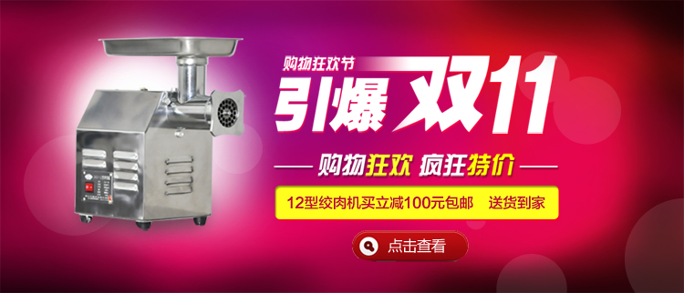 電動絞肉機分別有立式、臺式、豪華型等型號,這臺12型臺式電動絞肉機的優點是省電耐用、方便快捷、具有結構緊湊、外形美觀、操作簡便、效率高、耗電少、清潔保養容易、安全衛生等優點。