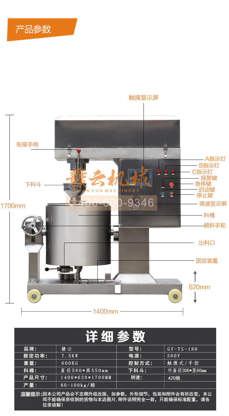手自一體 程序智能打漿機 贛云100L 180型肉丸打漿機 簡介
