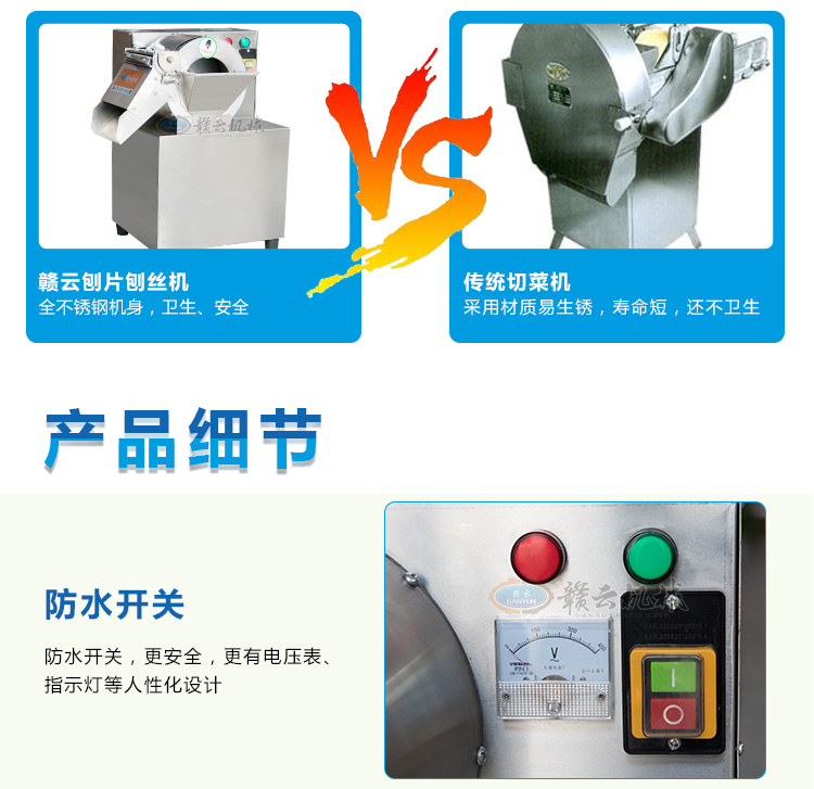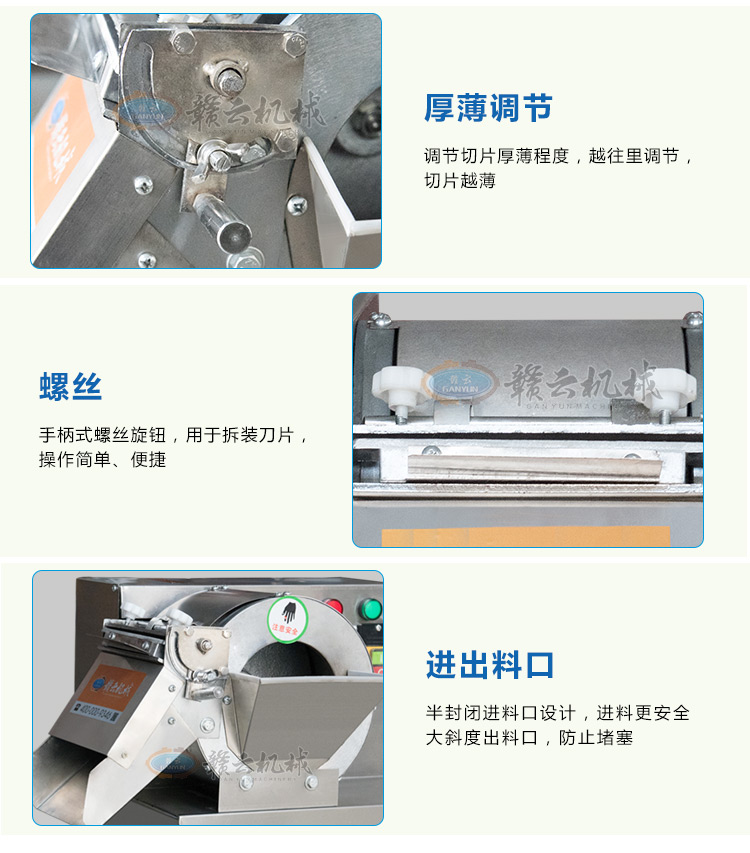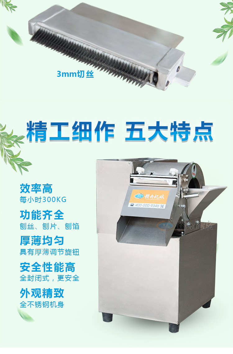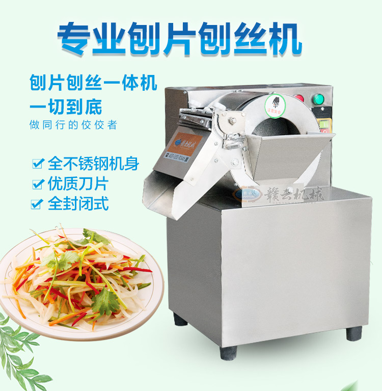 贛云牌145型刨片刨絲機,可用于土豆、蘿卜、胡蘿卜、茄子、黃瓜等刨片或刨絲,還能切顆粒,整機外殼采用不銹鋼材質,小巧精致,刨片厚度可調范圍1-10mm,配有固定切絲刀3mm和5mm規格。特別適用于學校食堂,果蔬加工廠,礦場、部隊等大型食堂加工之用。