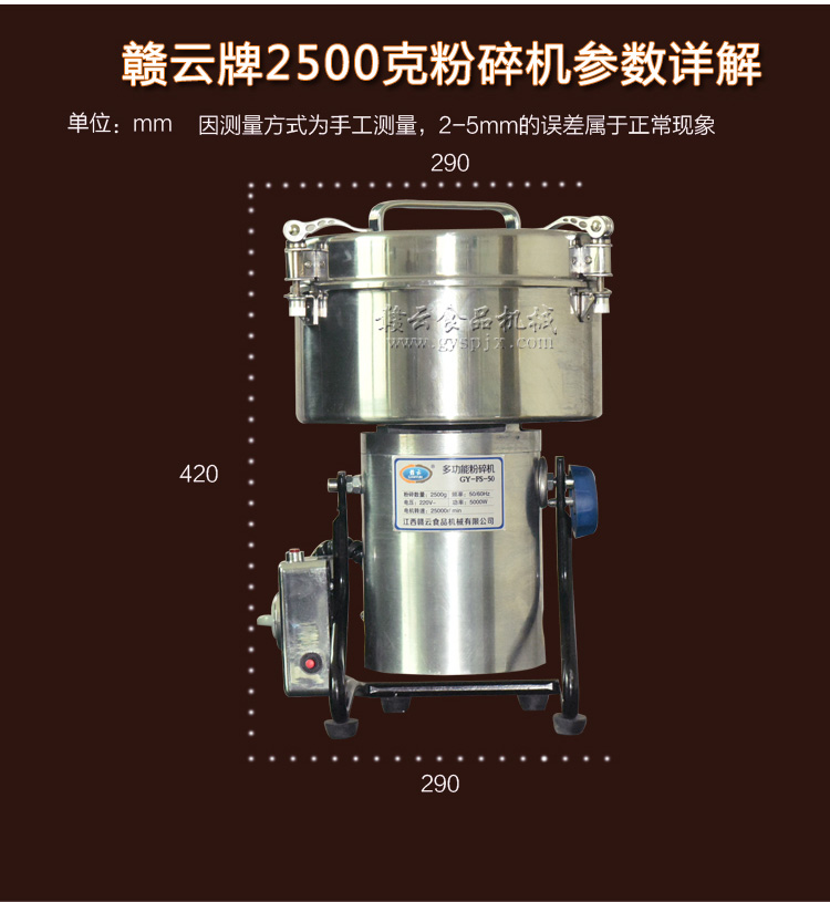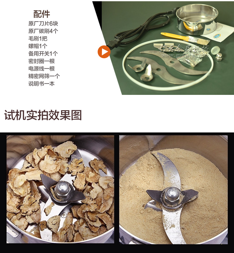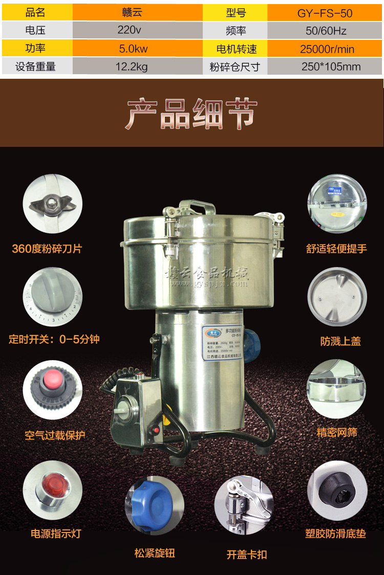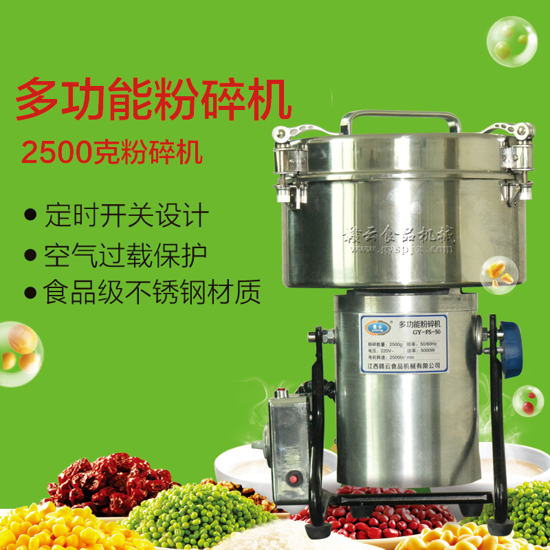 贛云系列多功能粉碎機采用純銅高速電機帶動粉碎刀片將物料快速打成粉末,可用于粉碎五谷、雜糧、田七、阿膠、白叁等,一般粉碎時間1-2分鐘即可,新款粉碎機改保險絲為空氣過載保護器,使用更安全,我廠提供的粉碎機有100克-1000克不同型號的多功能粉碎機。