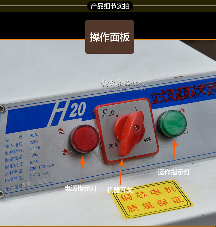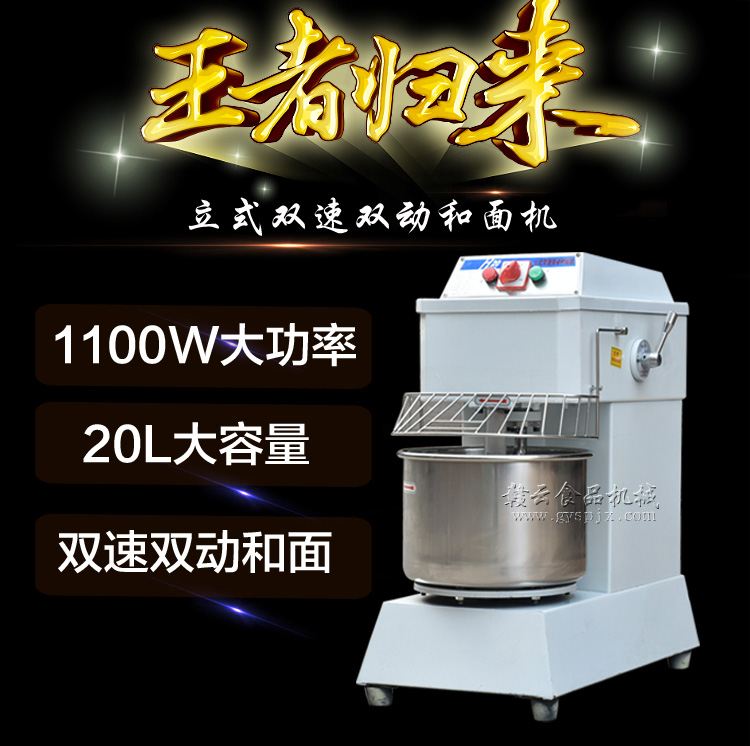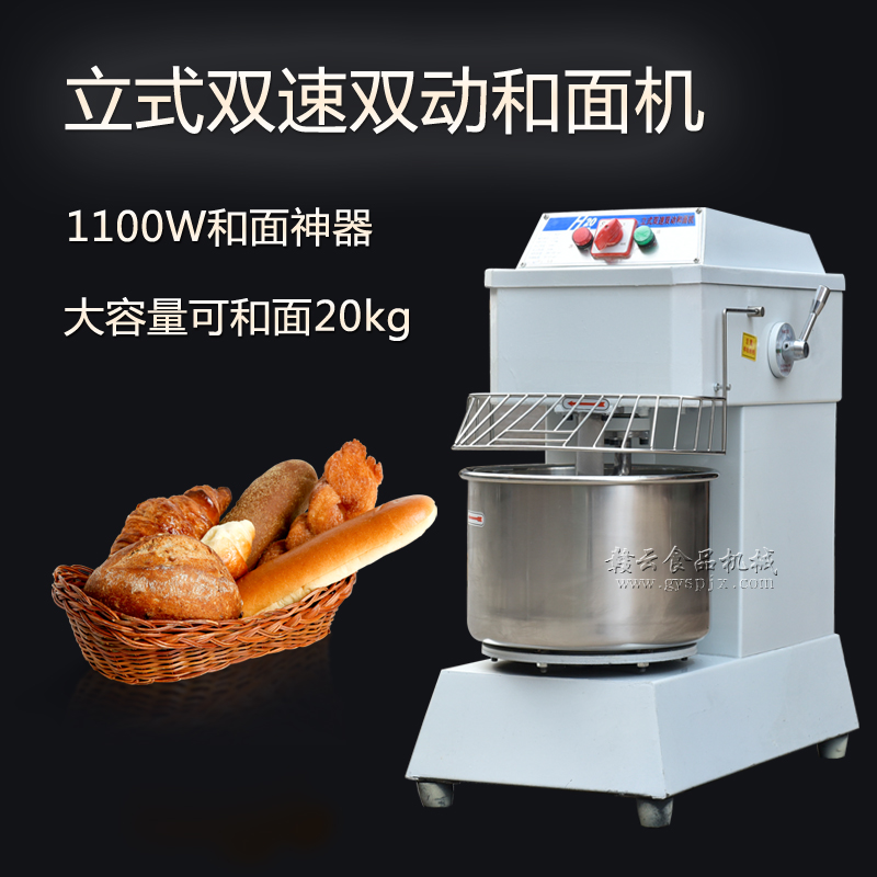 贛云牌HL-20型和面機,立式雙速雙動型和面攪拌機,有兩個檔位(快慢檔),工作時攪拌桿會轉動,料桶也跟隨轉動。具有結構緊湊、轉動平穩、用途廣、噪音低,能迅速使干性面粉成為富有一定彈性、伸縮和流動均勻的面團。亦適用于攪拌醫學藥粉、工業用粉漿等,廣泛用于各工廠企業、機關、部隊、食堂及各大賓館,是飲食服務器行業的常見用品。我廠常規批量生產供應的雙速雙動和面攪拌機有20L和30L兩種型號,如需更大規格可定做,如60L、80L,歡迎來電咨詢:電話0797-8373422