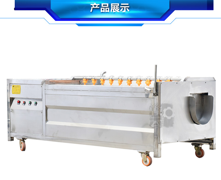 毛輥式連續自動清洗機采用食品級不銹鋼制造而成、堅固耐用,毛輥全部采用優質樹脂、韌性高、耐磨性好,從而達到洗潔凈高、節省勞力、節水。