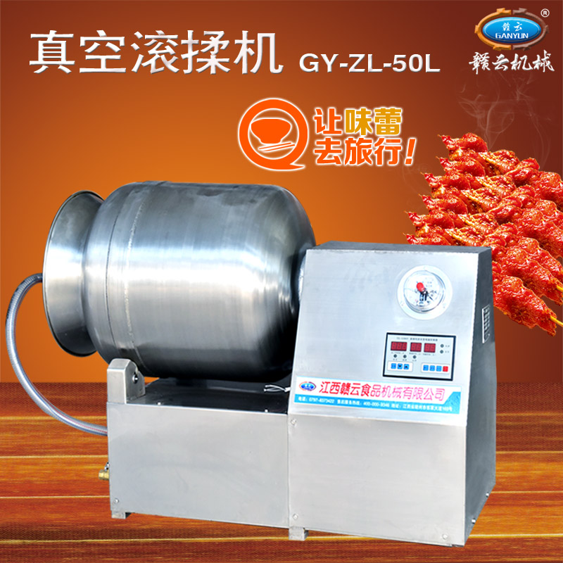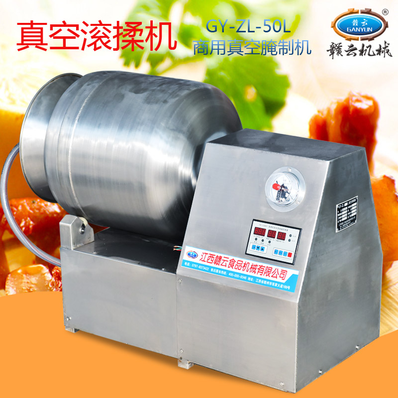 滾揉機除了能加速腌效果外,采用滾揉技術達到肉質嫩化效果的也是西式火腿加工的重要工序,然肉質在常規的滾揉機械加工過程中常常會因為摩擦滾揉升溫而容易導致肉質變質,因此滾揉的時間需要控制的十分好。贛云真空滾揉機是為了彌補常規型滾揉機的缺點而進行科學的設計,真空狀態下可以很好的保證肉質的質量,在經過微電腦控制滾揉時間,使得整個滾揉工藝變得簡單化和可快速復制性。