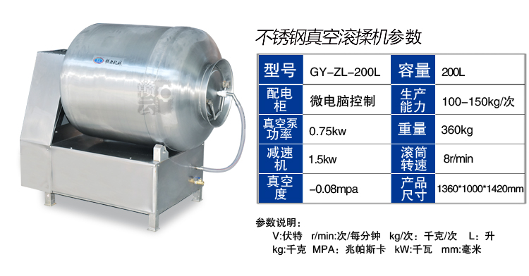 肉制品前處理->斬拌滾揉設(shè)備->200升真空滾揉機(jī) | |||||||