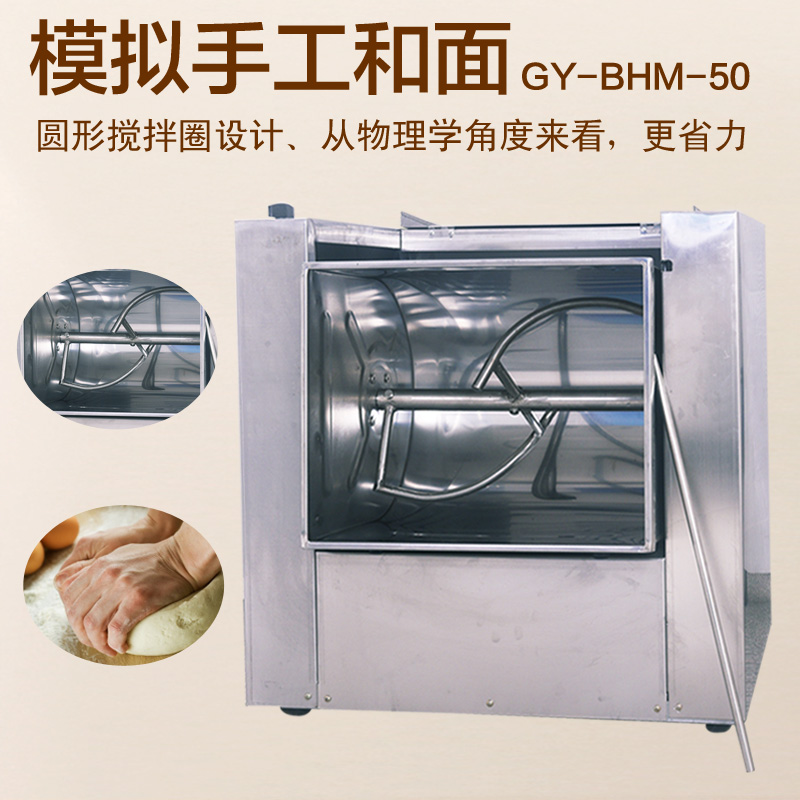 贛云牌BHM-50型和面機,采用全封閉結構,更加注重機器的衛生和安全同時具有結構湊、轉動平穩、用途廣、噪音低,能迅速使干性面粉成為富有一定彈性、伸縮和流動均勻的面團。亦適用于攪拌醫學藥粉、工業用粉漿等,廣泛用于各工廠企業、機關、部隊、食堂及各大酒店,是飲食服務行業的重要用品。