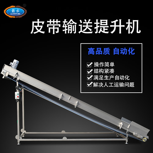提升機,提升輸送設備,提高企業加工生產線自動化程度,解決人工運輸難題,可根據客戶定制各種輸送設備,中高端提升機,全304不銹鋼材質設計,采用高級噴砂技術處理,品質保證,可升降提升,適用范圍更廣,贛云60型皮帶提升機可配合多種食品加工機械聯合適用。