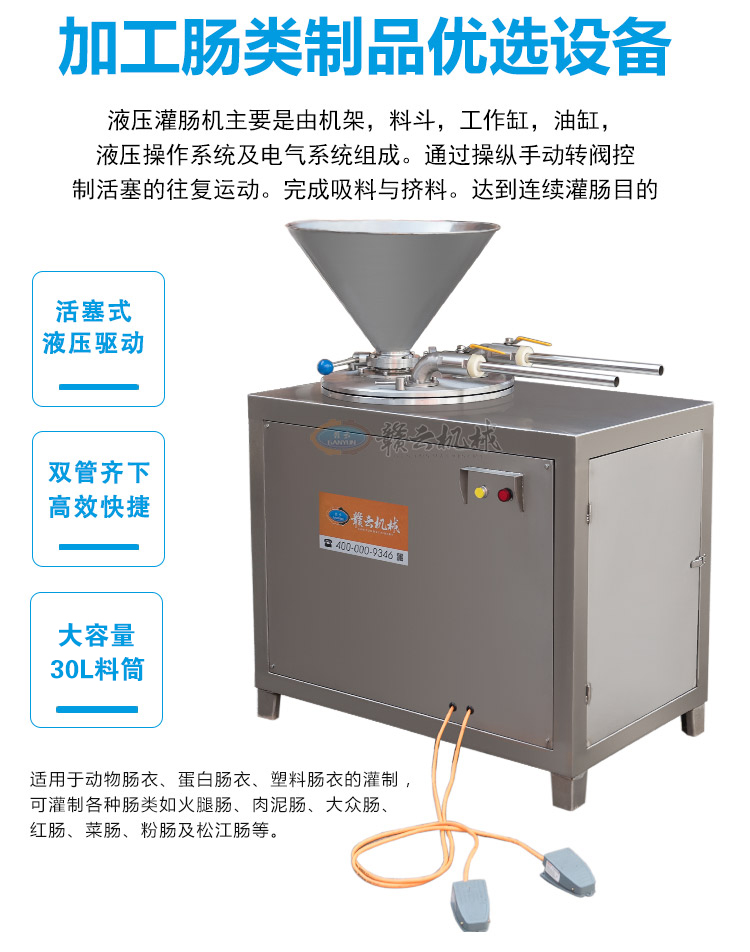 主頁-> 肉制品前處理->專用灌腸設備->30升液壓灌腸機