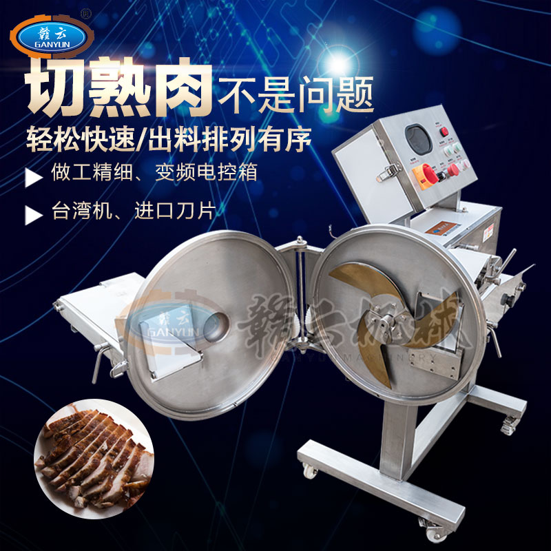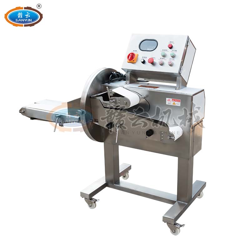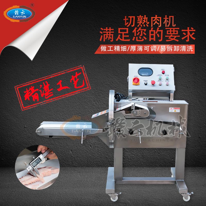 GYSQ-120D切熟肉機,專業切熟肉機可切扣肉、鹵豬耳朵、五花肉等,通過調整輸送帶的速度控制切割厚度,輸送帶越快厚度越厚,越慢越薄。適用于食堂、中央廚房、餐飲配送中心、肉聯廠、大型酒店等。變頻電控箱,通過調節輸送帶速度控制切割厚度,按鍵防水設計,可拆卸輸送帶。優質刀片,杜絕卷刃。