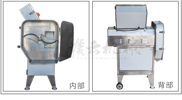 GY-SZKP-120A砍排機,優質刀片。通過調節輸送帶速度控制切骨長短線路排列整齊,防水設計開關按鈕,有機玻璃可清楚的看到變頻器參數。壓菜帶根據不同的需求調節不同的高度,輸送帶采用PVC材質,可拆卸更換輸送帶,拆卸方便。優質刀片,杜絕卷刃。機身背面散熱孔設計,電機運作時散發熱量,散熱孔設計更有效的保護電機的壽命,出料口傳感器設計,機器運作時打開刀盤門機器停止運作,安全穩定,人性化設計。