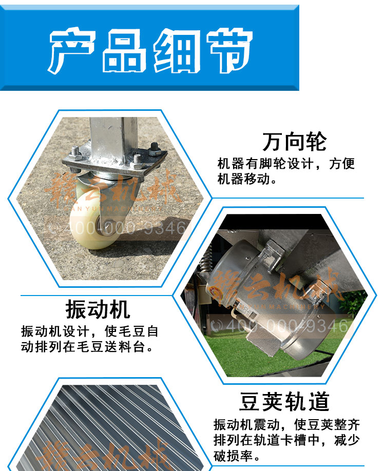 和水份蒸發,也可以洗凈豆莢上的沙陳會減小機器的磨損。