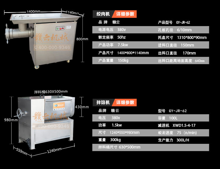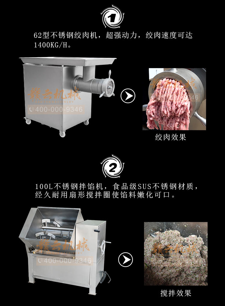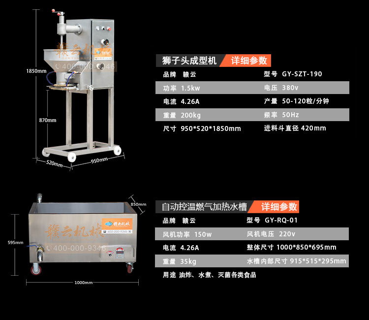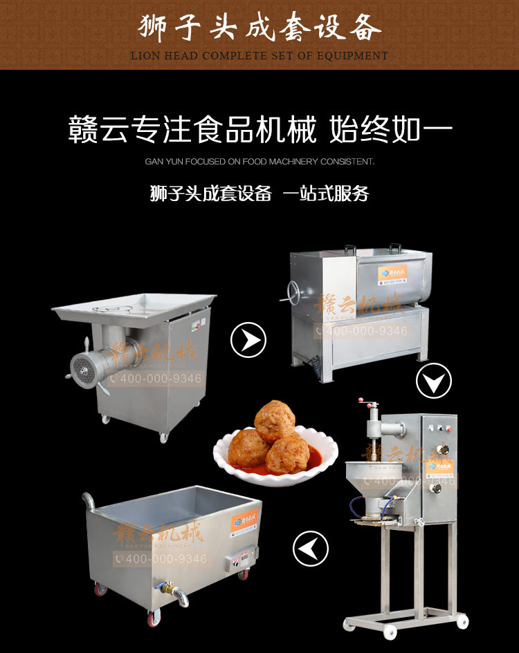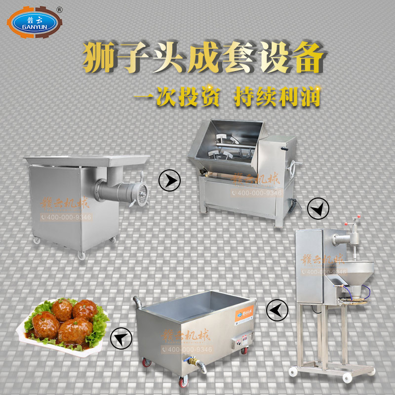 贛云牌獅子頭成套設備包含有攪拌機,絞肉機,成型機,水槽。是商用酒店的好幫手
