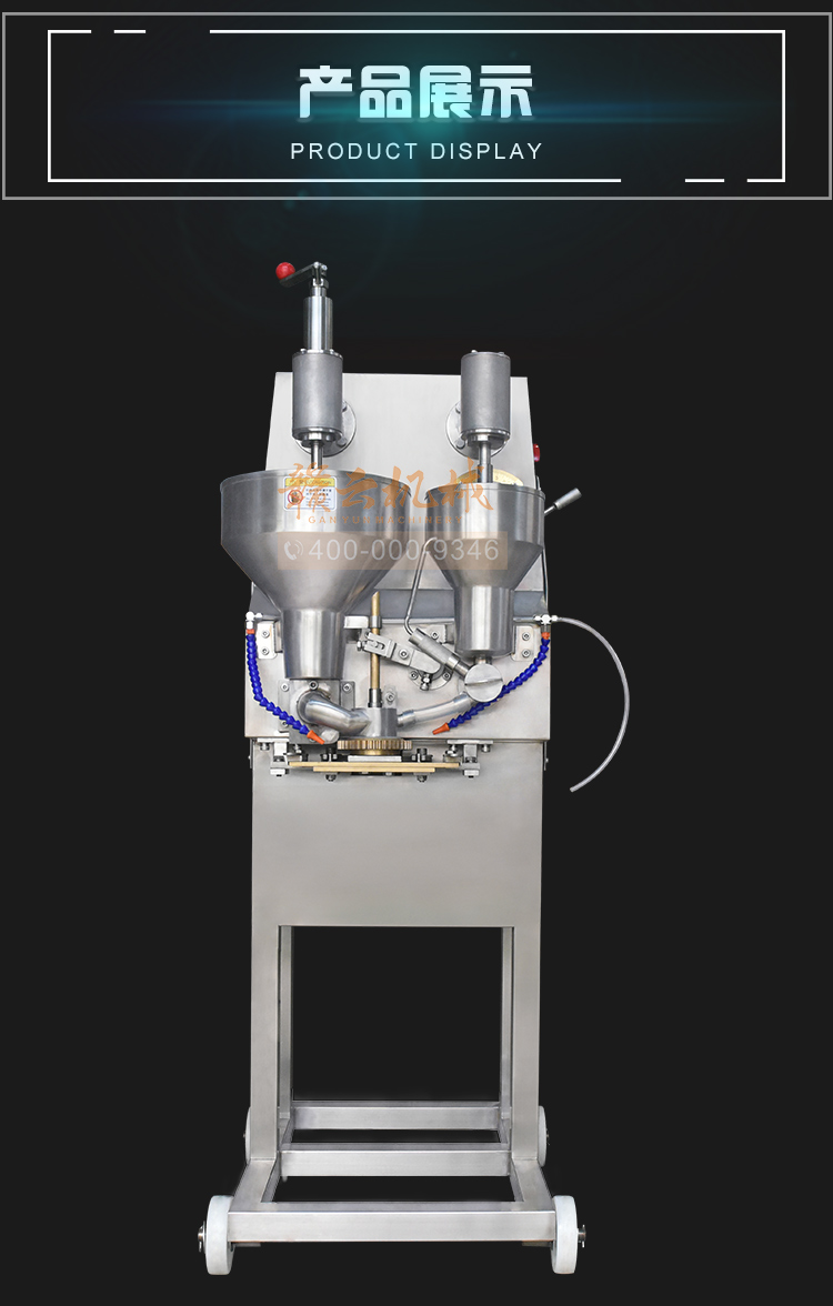 采用全不銹鋼304外殼,便于沖洗,不易生銹,美觀大方,符合食品生產要求。產品成型規格統一,肉餡居中,無破餡。