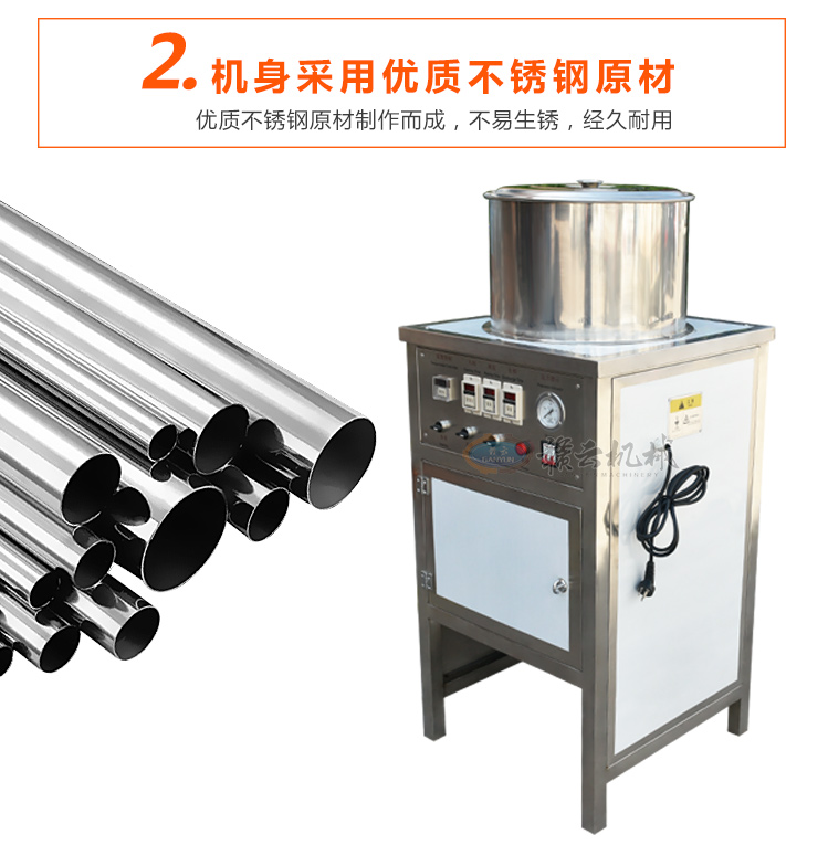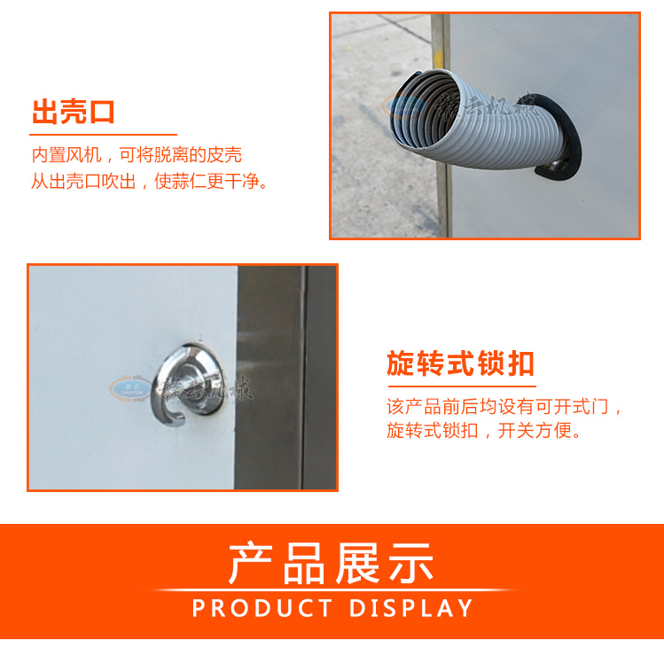 通過電、氣原理控制入料、脫皮、出料程序,實現完全自動化,連續工作,大大降低人力勞動強度