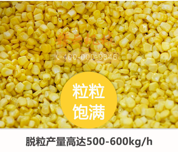 脫凈率高——可根據玉米棒大小自動調節,適合各種大小玉米的脫粒,脫粒深淺可調,甜玉米剝凈率可達100%。