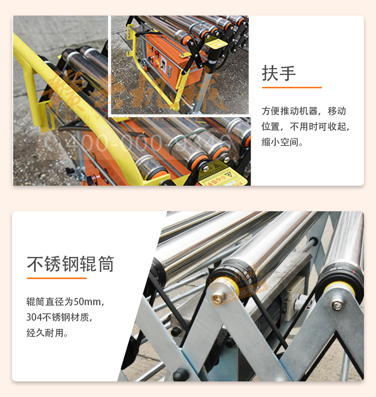 此為6米輸送線,長度可伸縮2.2-6米,高度可調節60-90 厘米之內。每米配置10根直徑為50毫米輥筒,每米配220v 90w電機一臺,可定制其它尺寸。