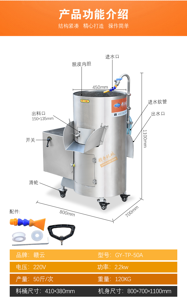 主頁-> 果蔬加工機械->去皮清洗設備->50斤不銹鋼毛芋土豆去皮機