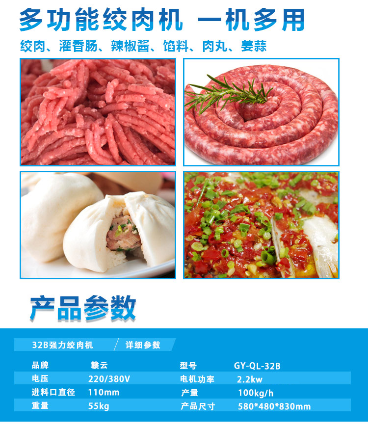 這款32B型強(qiáng)力絞肉機(jī)采用不銹鋼材質(zhì)加工精致而成,改傳統(tǒng)的鑄鐵絞肉機(jī)頭為不銹鋼絞肉機(jī)頭,使之接觸食品部位均為不銹鋼材質(zhì),不生銹,達(dá)到食品安全衛(wèi)生要求。
