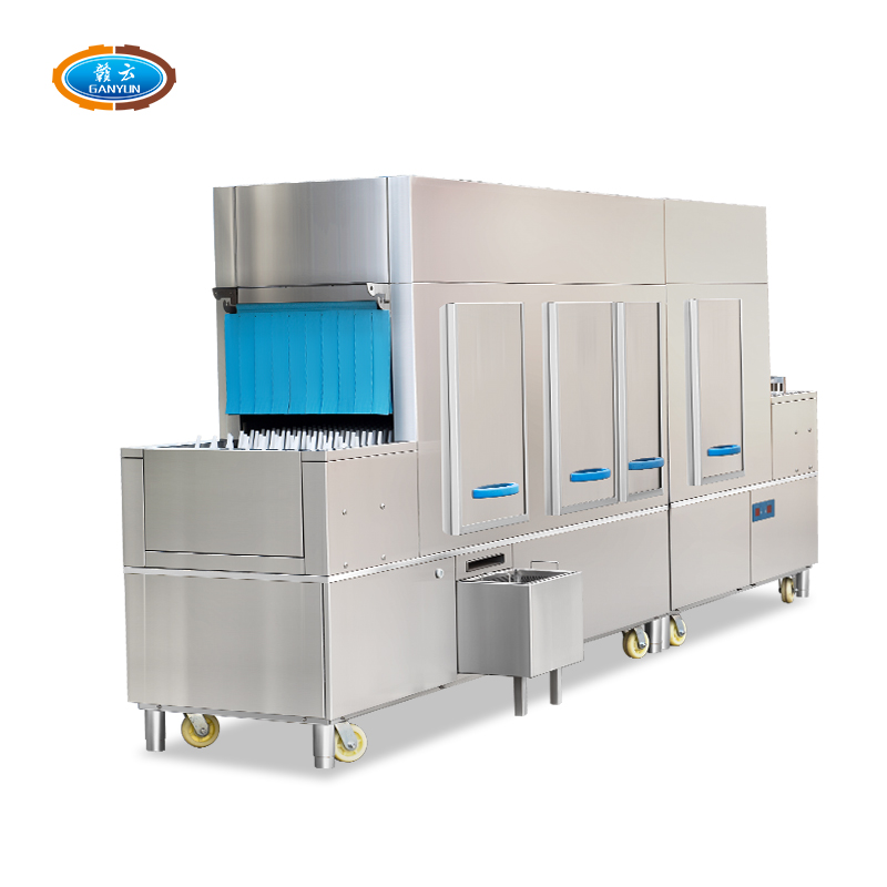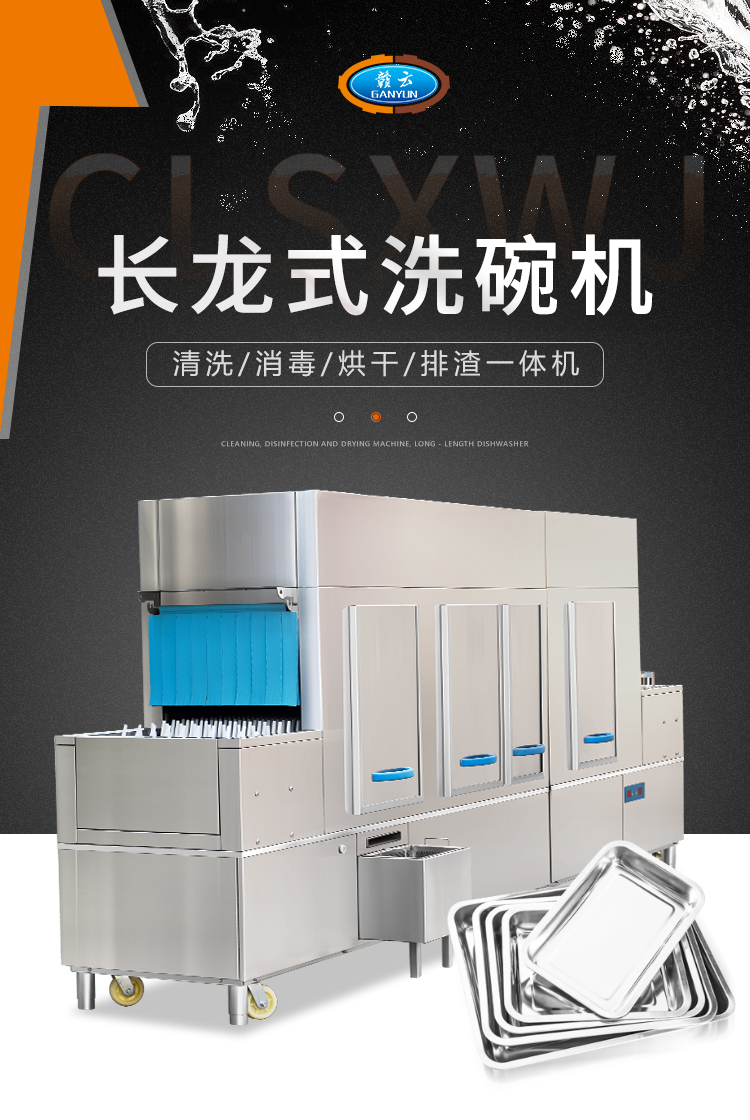 中央廚房設備長龍式洗碗機,機器采用不銹鋼材質,這款商用洗碗機是一款能自動清洗碗、盤、碟等餐具的設備,機器主要功能是清洗/消毒/烘干/排渣一體的多功能自動洗碗機,了解更多的中央廚房設備,如:洗碗機,商用洗碗機,大型洗碗機,爐灶等中央廚房設備,找贛云食品機械