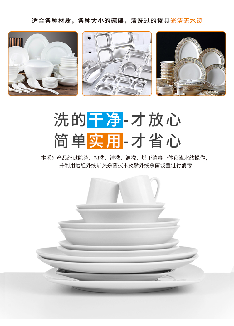 適合各類型碗碟的清洗、消毒、烘干、排渣的一體機