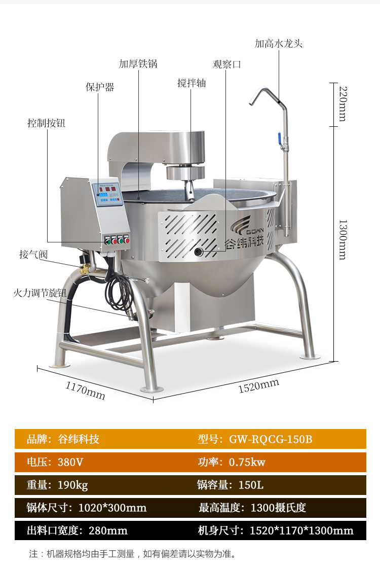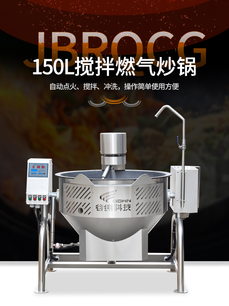 主頁-> 中央廚房設備->熱調理區設備->150升燃氣炒菜機(帶攪拌)