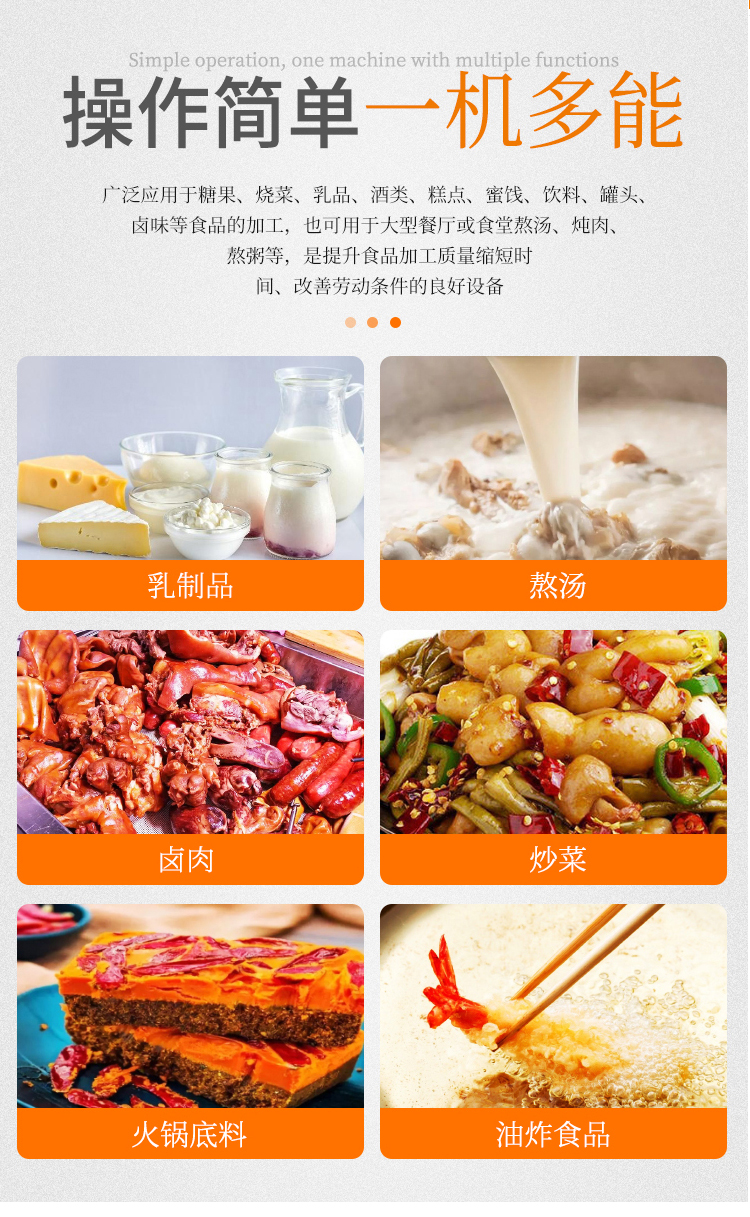 用于燒菜、火鍋底料、熬湯、燉肉、乳品、酒類、糕點、蜜餞、飲料、罐頭、鹵味等食品的加工