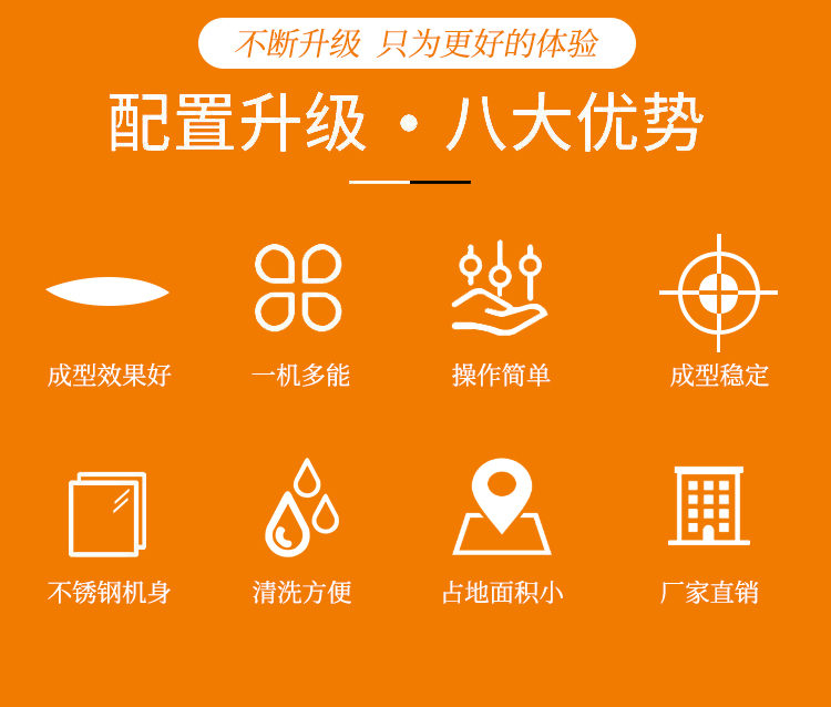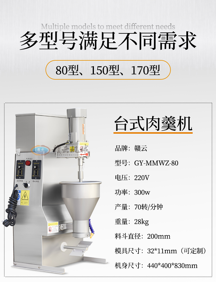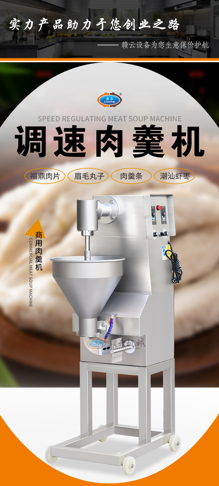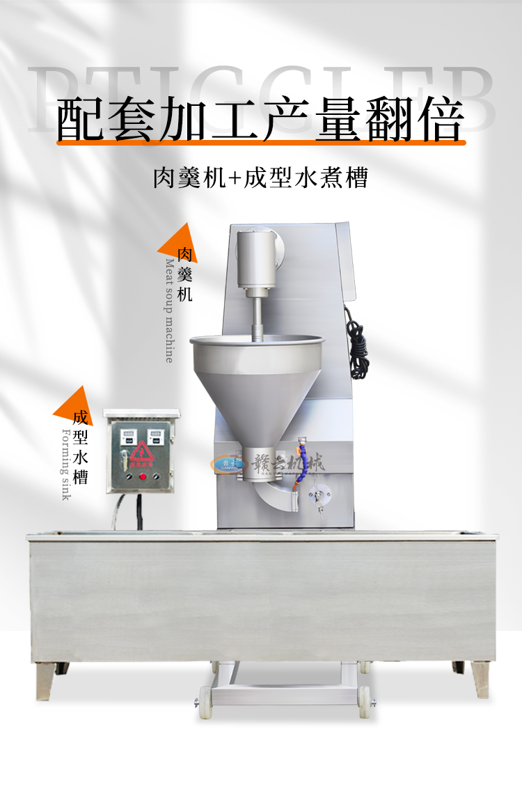 適用于加工成型:眉毛丸子、福鼎肉片、肉羹條、瘦肉羹、潮汕蝦棗等。