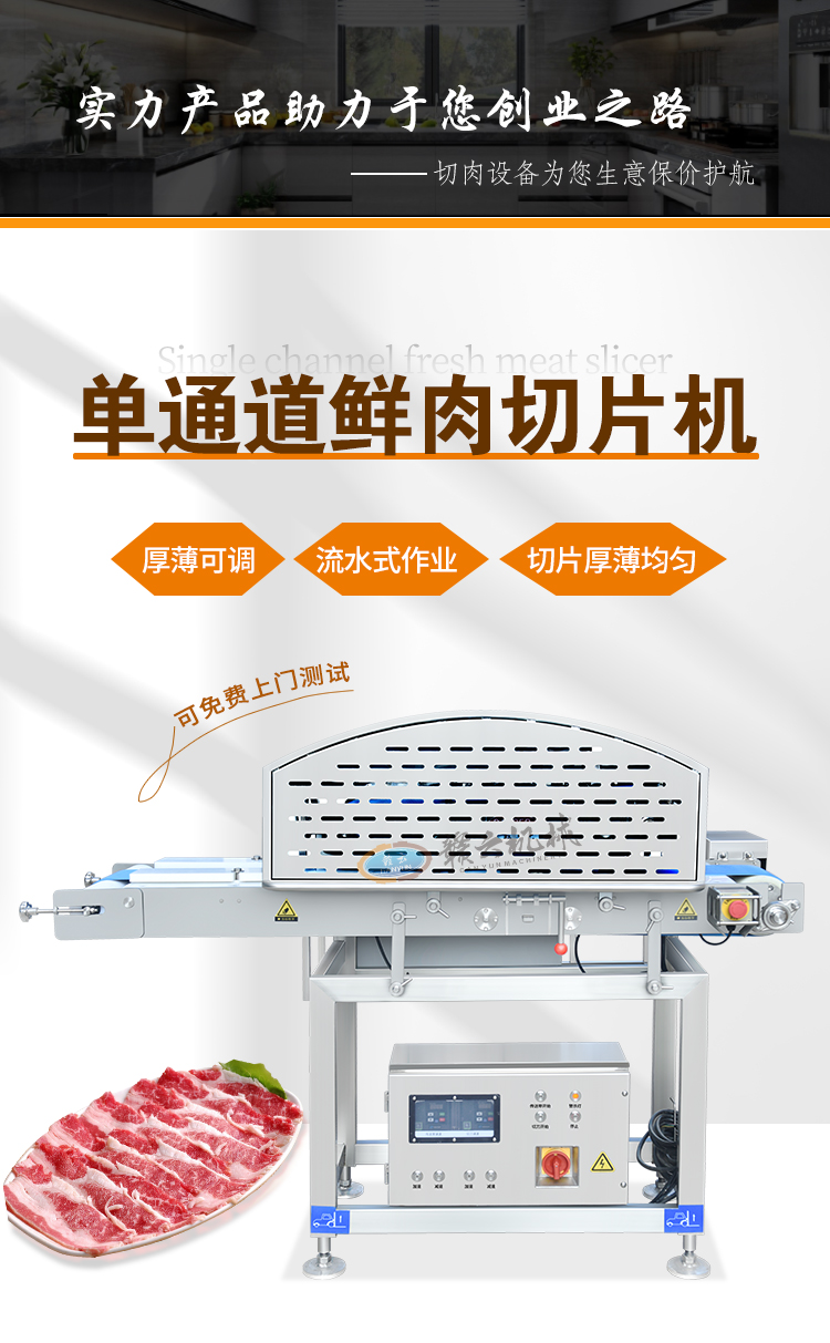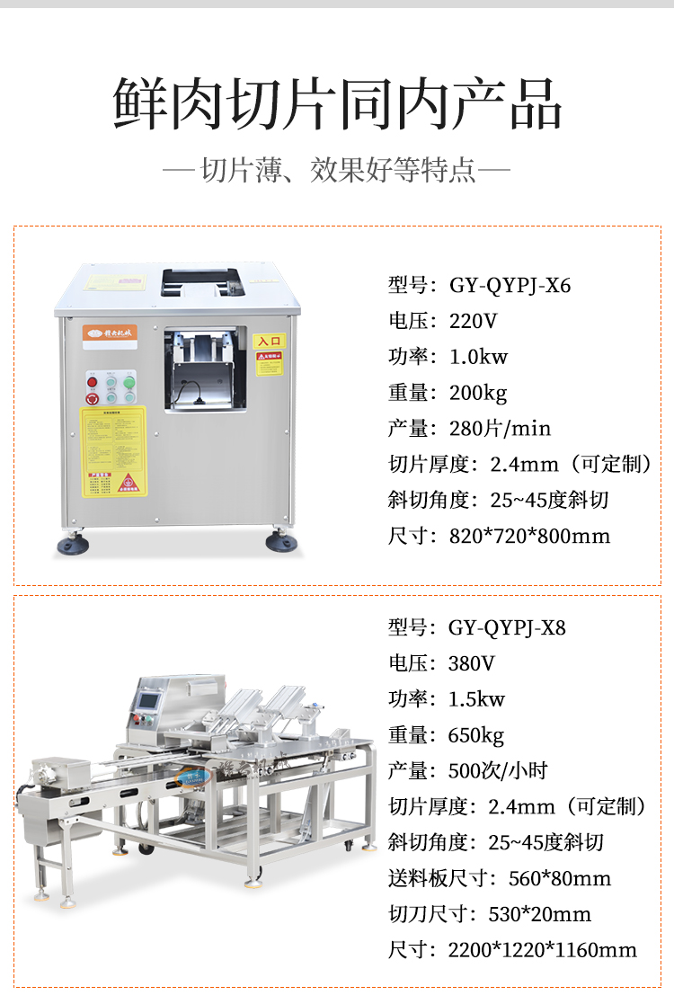 通道式切鮮肉機適用于將各種鮮肉的一次切分成多片。
