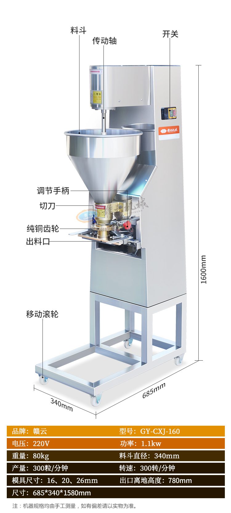 主頁-> 肉丸成型機械->實心肉丸機->160肉丸成型機