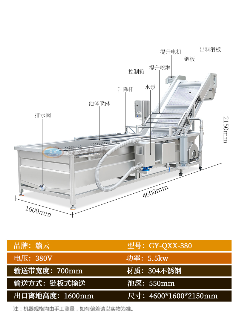 適用土豆、白菜、櫻桃、蘋果、蘿卜、魚、青菜、辣椒、香料、姜等水果蔬菜、水產品和其它各類食品的清洗。