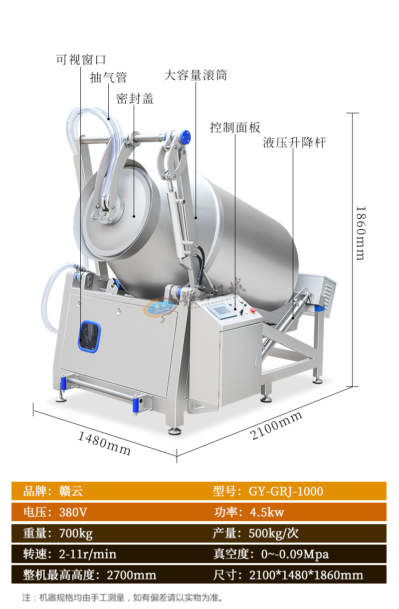 主頁-> 肉制品前處理->斬拌滾揉設備->1000型液壓真空滾揉機