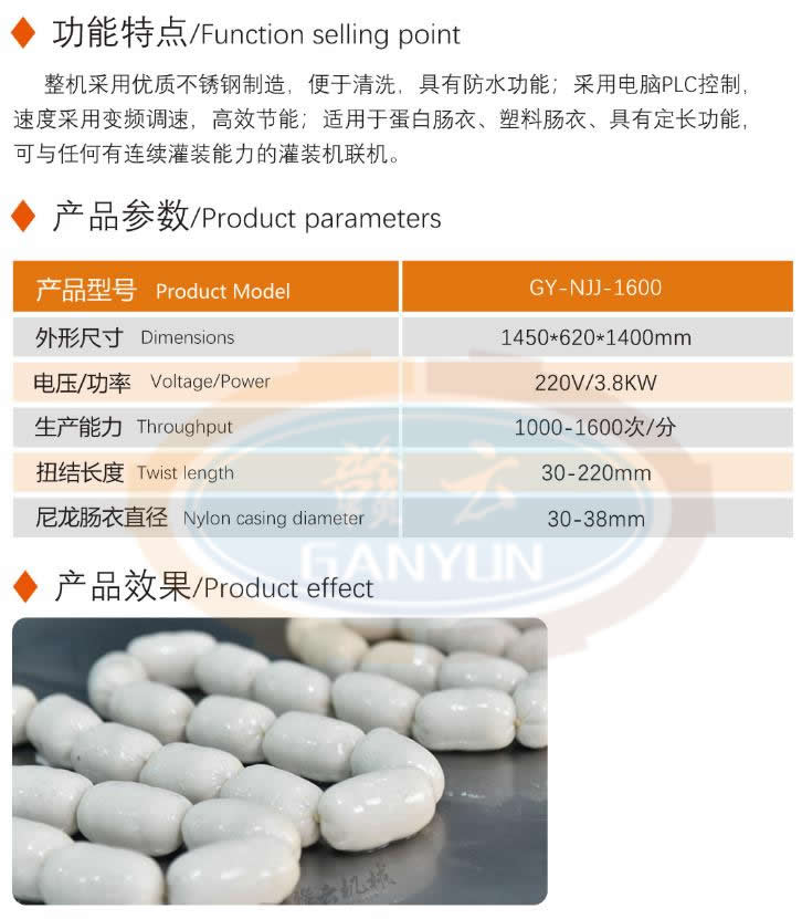 肉制品前處理->專用灌腸設(shè)備->1600高速扭結(jié)機(jī) | |||||||