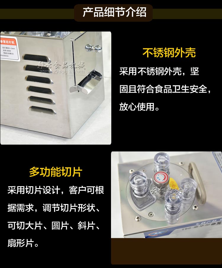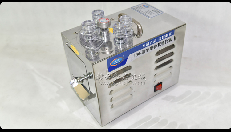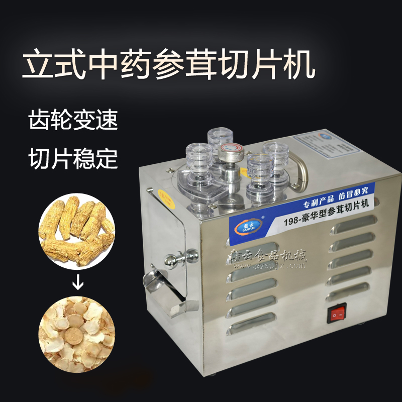 本機選用單相電機配套,采用高檔軸承,并安裝四把刀片在刀盤上,速比慢而切片功效高,切片厚薄可以調節,廣泛適用于中藥房、藥店、中藥加工場等。本機具有體積少、效率高、操作簡便、精巧美觀,即省電又安全等特點。