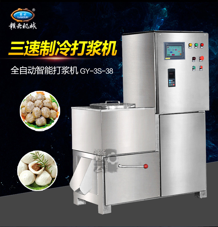 贛云2016推出38型新款三速制冷打漿機(jī),集低、中、高三種速度合一,配備對(duì)應(yīng)的三種刀組,結(jié)合高效的壓縮制冷系統(tǒng)、程序觸摸操控系統(tǒng)、打漿桶溫控感應(yīng)報(bào)警停機(jī)系統(tǒng),獨(dú)家設(shè)計(jì)閥門流水式出料,專為中小型肉丸加工廠和大型肉丸廠實(shí)驗(yàn)室打漿設(shè)備量身打造之用。適合各式肉丸制漿,是未來(lái)全能智能打漿典型代表作品。