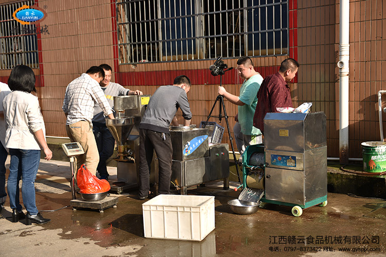 2016年4月底,來自上?蛻舻膶(shí)心魚丸客戶試機(jī)體驗(yàn),贛云工藝師為客戶展示了實(shí)心魚丸的機(jī)械化生產(chǎn)加工過程,制作出符合客戶需求的高品質(zhì)魚丸,本次試機(jī)采用了魚肉采肉設(shè)備、絞肉設(shè)備、慢速魚丸打漿設(shè)備和實(shí)心魚丸成型設(shè)備。