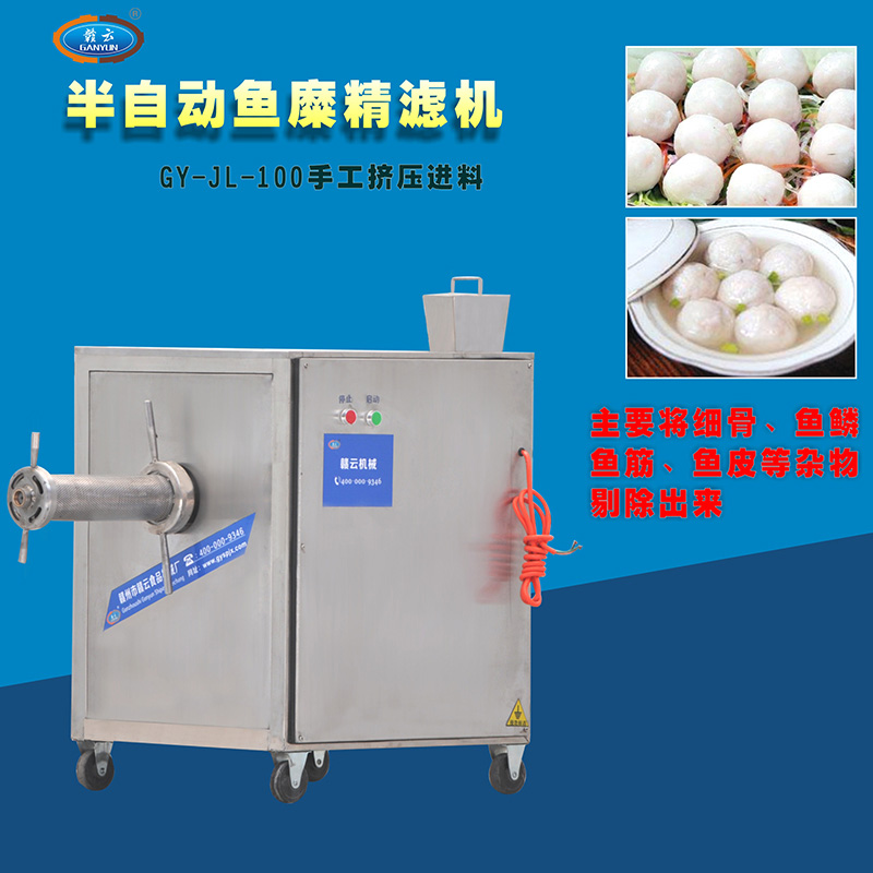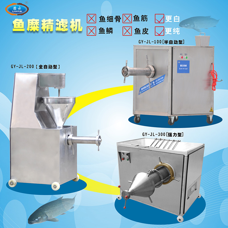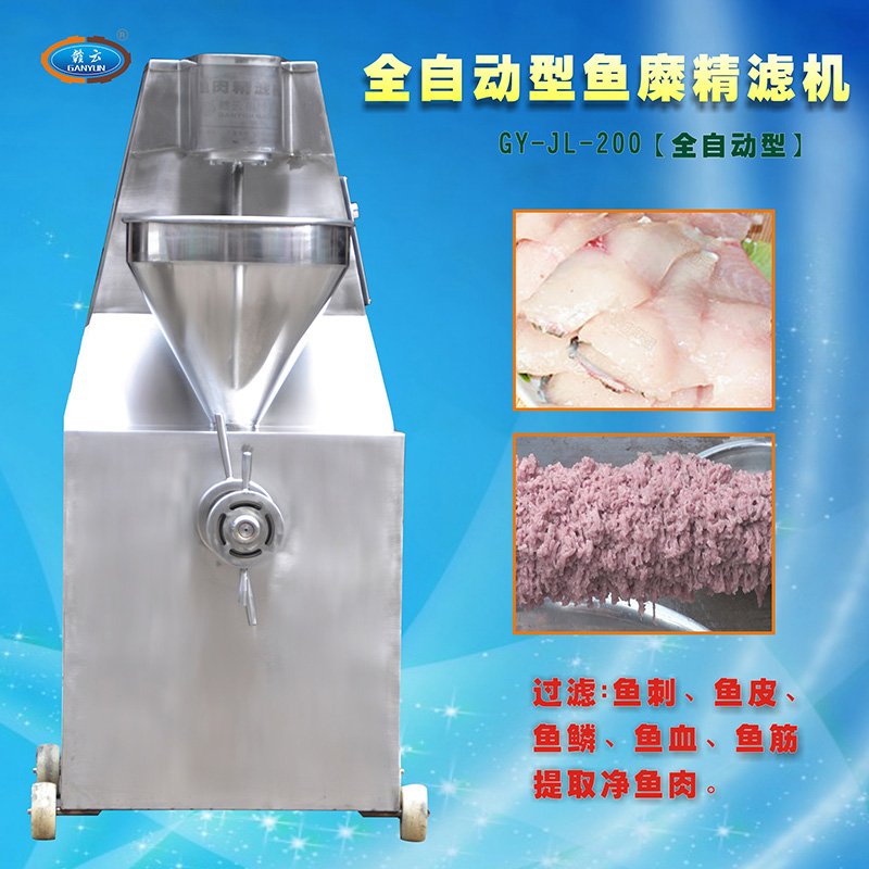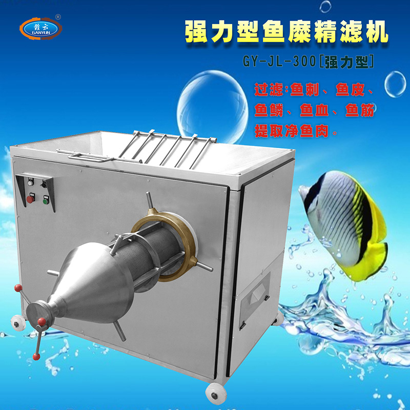 魚肉精濾機主要用于魚糜加工生產, 是贛云牌魚肉采肉機采取魚肉之后的第二步精濾處理設備,用魚肉精濾機精濾的魚肉色澤白。主要將魚漿中的魚細骨、魚鱗、魚筋、魚皮等雜物剔除出來。