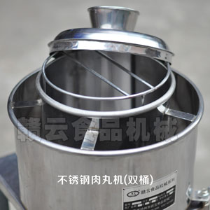 打漿桶采用目前國內肉丸機的最新技術--無焊接縫,在舊款全不銹鋼肉丸機的基礎上給支撐架加粗加厚,用不銹鋼蓋,打漿雙桶,刀柄刀片均采用不銹鋼材質。打漿桶裝肉量3L,一次可打肉漿6斤左右,采用2800r/min高速電機,故稱之為高速肉丸機。