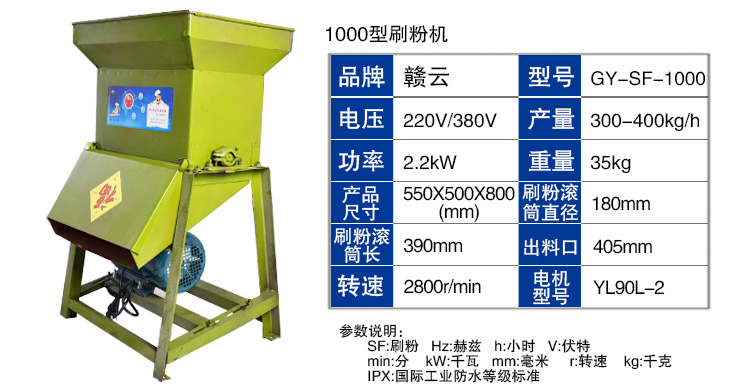 1000型紅薯刷粉機技術參數僅供參考